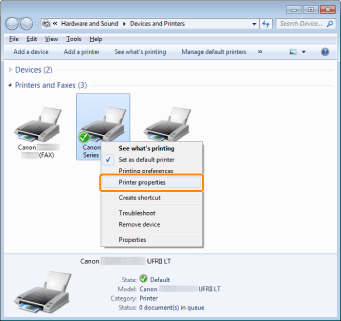 - If the Canon printer isn’t set as the default printer, right-click on the printer labeled “Canon Printer” and choose “Set as Default”.