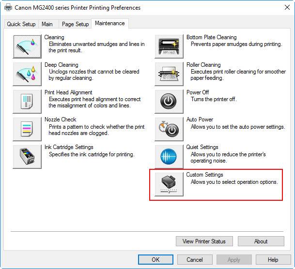 - Choose “Custom Settings” located within the Maintenance tab. This action will prompt the opening of the Custom Settings dialog box.