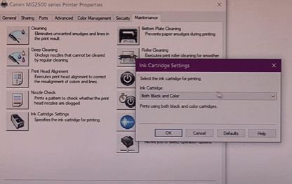 - Select ink cartridge settings and choose both black and color option and ok ok to save it.