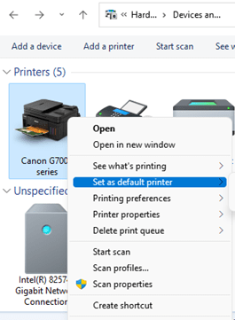Solution 5: Set Canon as a Default Printer to fix Not Printing Issue