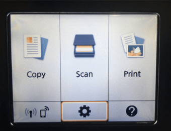 - Ensure that the printer is powered on and then tap the setup (gear icon) on the printer display’s home screen.
