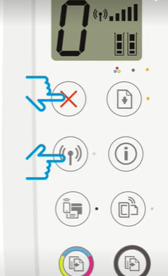 - Simultaneously press and hold the Wireless button and Cancel button until the Power button blinks.