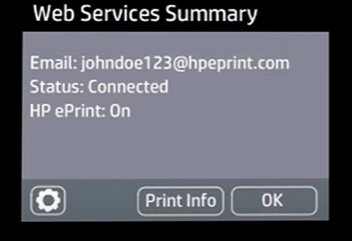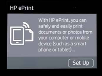 - If a prompt to turn on Web services or setup HP ePrint displays, follow the prompt to turn it on or set up.
