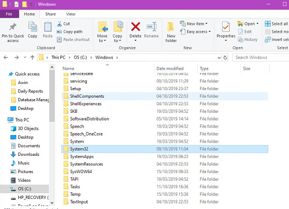 - Thereafter, go to ‘My Computer’ & double-click ‘Local Disk (C:)’ and select the ‘Windows’ folder > ‘System32’ folder> ‘spool’>’Printers’