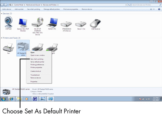 - On the following screen, choose the HP printer option, right-click on it, select ‘Set as default printer,’ and proceed.