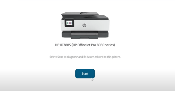 - Initiate the diagnostic process by clicking on “Start” to identify and rectify any printer-related issues.