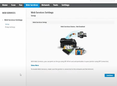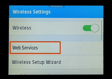 - In case the control panel lacks an HP ePrint icon, navigate to Web Services setup, Network setup, or Wireless settings to access the Web Services menu