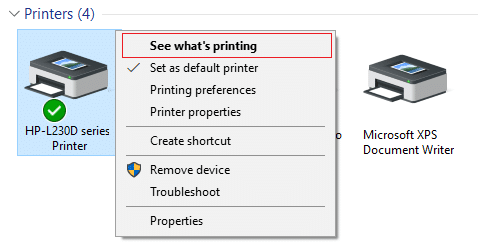 - Then, right click on HP printer icon and select ‘See What’s printing’ option.