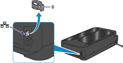 • Here, you will need an ethernet cable. Remove the cap (B) from the upper port that is located on the right side at the back of your Canon Pixma ix6820 printer.