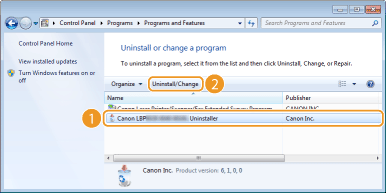 - Locate the Canon printer series MP Drivers from the list and click on Uninstall.