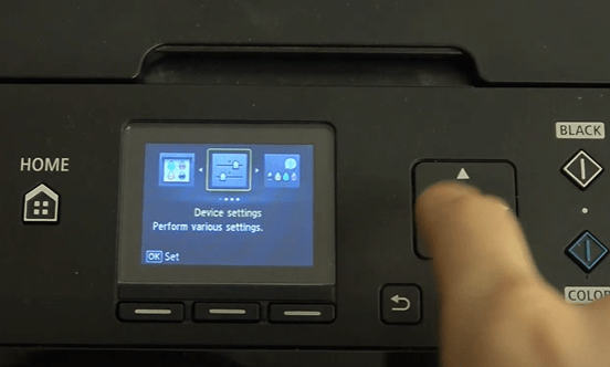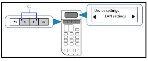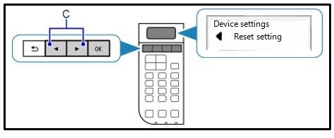- Use the arrow buttons (C) to navigate and select [Device settings], then press the [OK] button.
