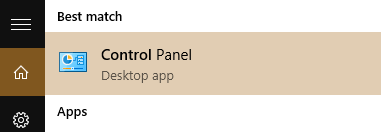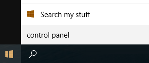 - Find and click on the Windows logo, then type “control panel” into the search field.