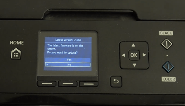 - Confirm your intention to update the firmware by selecting Yes and pressing OK.