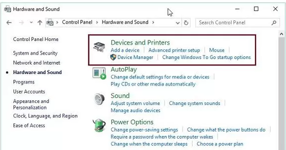 • Open the Control Panel from the Windows desktop screen and then open the “Devices and Printers” link.