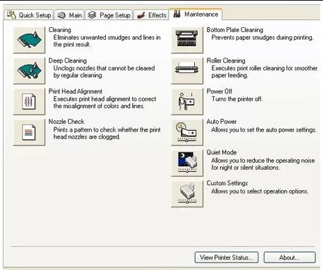 • From the “Maintenance” tab select the “Deep cleaning” and “Nozzle check” option.