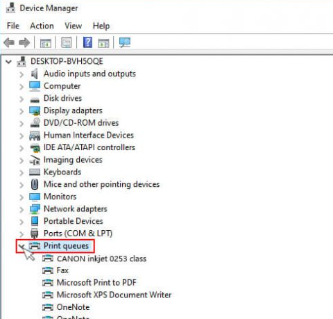 • Once the Device Manager is opened, point on the ‘Print Queue’ option and expand on it.