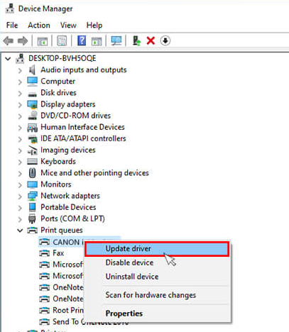 • Then, right click on your printer, select the ‘Update Driver’ option and check if  the update is available or not.