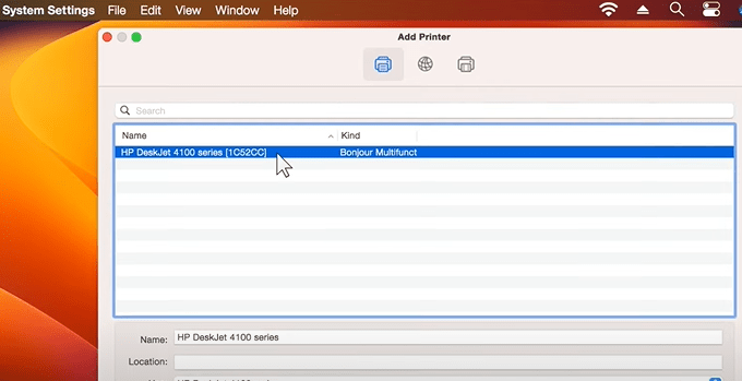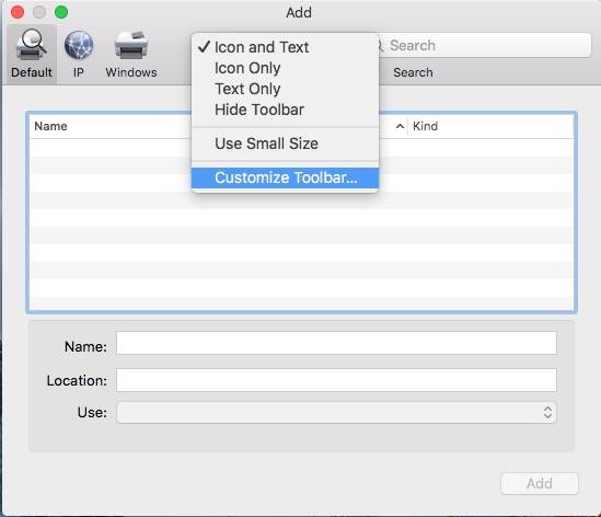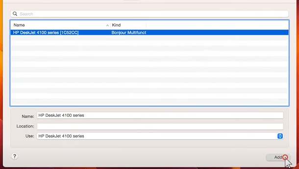 • Press the “+” icon below the printer list to add a new printer.