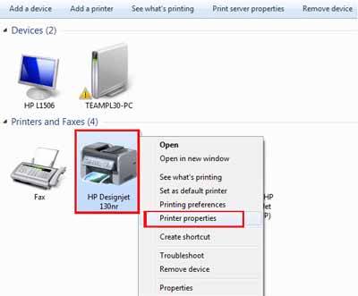 • Now choose your HP printer and perform a right-click from the list of printers.