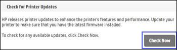 • Navigate to “Check for Printer Updates” and select “Check Now.” Any new updates will automatically install here.