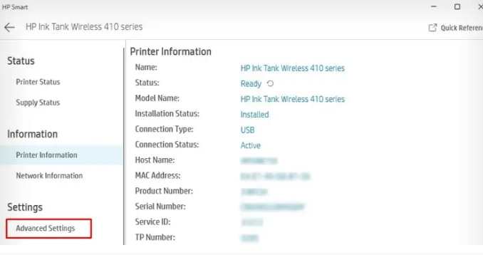 • Navigate to the “Advanced” or “Settings” section and select “Advanced Settings” to open the printer’s Embedded Web Server (EWS).