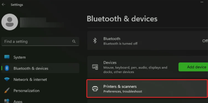 • Next, navigate to ‘printers & scanners’ option.