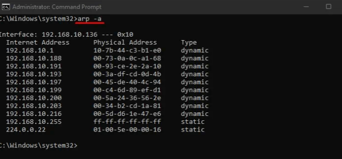 • Next, type ‘arp -a’ and press enter.