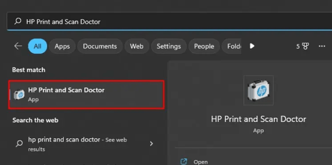 • Open the HP Print and Scan Doctor software on your computer.