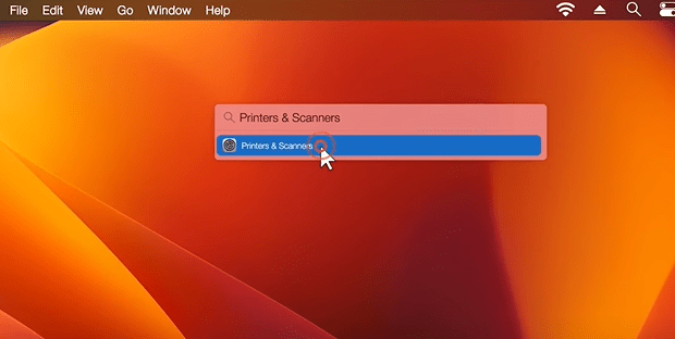 • Select the “Spotlight ” icon from the top menu bar > Search and open “Printers and Scanners”.