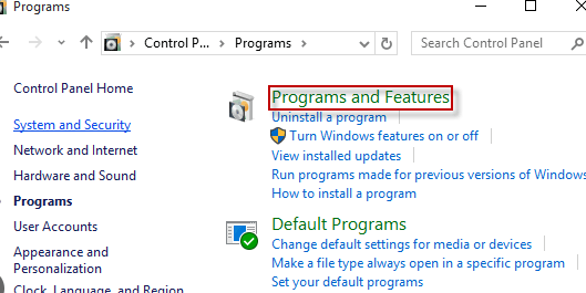 • Click on Program and features.