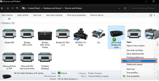 • Right-click on your designated printer and opt for ‘Printer Properties’.