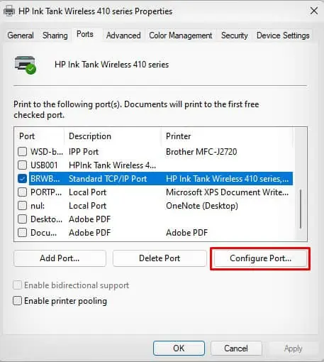 • Click on the ‘Configure Port’ button to further customize settings.
