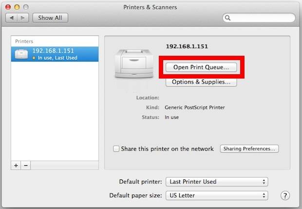 • Alternatively, you can choose a print queue item and press “Command + Delete” to delete it.