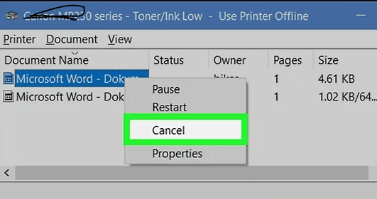• Select and cancel the print jobs as needed. This action will remove any unwanted print jobs from the queue.
