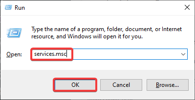• In that window, type in “services.msc” and then press the ‘Enter’ key. Thereafter, hit on the ‘OK’ button.