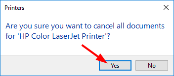- A confirmation dialog window will be opened at this moment, and you need to verify that by choosing “Yes” you want to remove all records in the print queue.