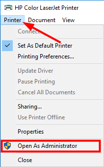 - Click the “Printer” menu element at the bottom left when the fresh folder starts and pick “Open as Administrator” from the drop-down menu.