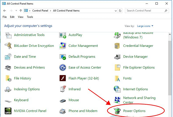 • Go to the ‘Control Panel’ from search bar of Windows and click on ‘Power Options’ button.