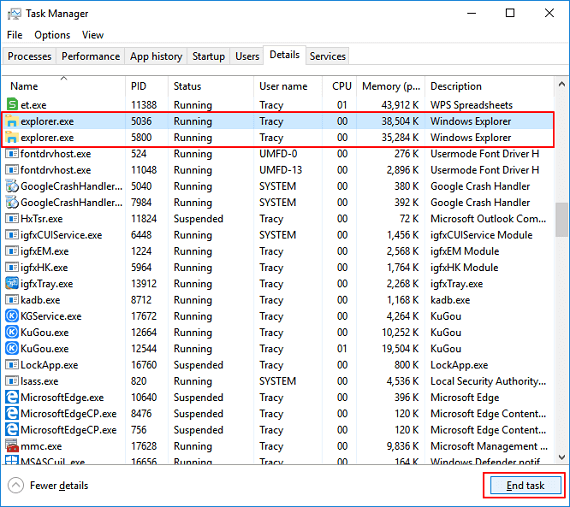 2. Restart the 'explorer.exe' process to fix HP laptop Black screen on the startup of Windows 10
