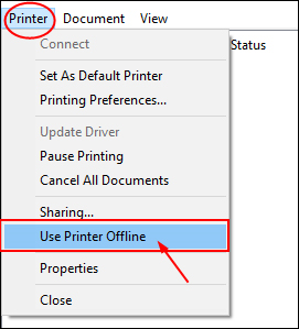 Check your printer’s ‘Offline’ setting: Through these mentioned steps ensure that your printer’s ‘Use Offline’ setting is not turned on.