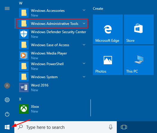 - Click on the ‘Start’ button on the window and go to the ‘Administrative Tools’ option and select ‘Services’ link.
