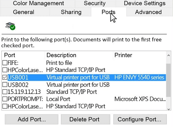 - Right-click on your printer option and select the ‘Printer Properties’ link. Select the ‘Ports’ tab from the Properties window.