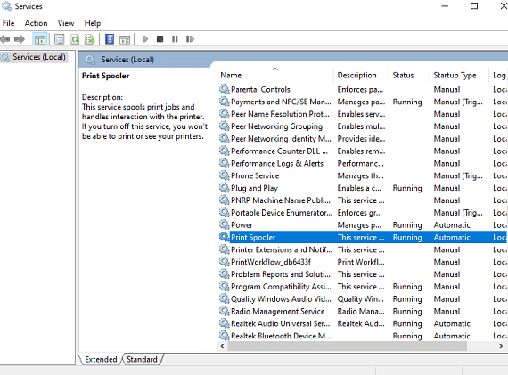 - Go back to the ‘Services’ link and look for the ‘Print Spooler’ option and right-click on it. Now click on ‘Start’ option.