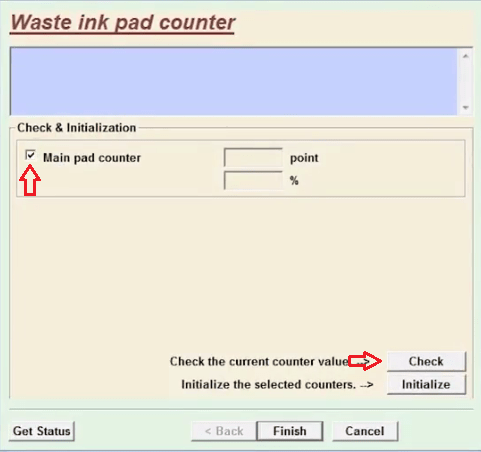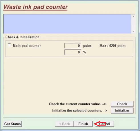• Search for the ‘Main ink pad counter’ option. From there, click on the ‘initialize’ button.