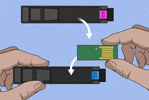 • Place the new chips into the respective cartridges. Ensure that the chips are correctly aligned and securely placed.