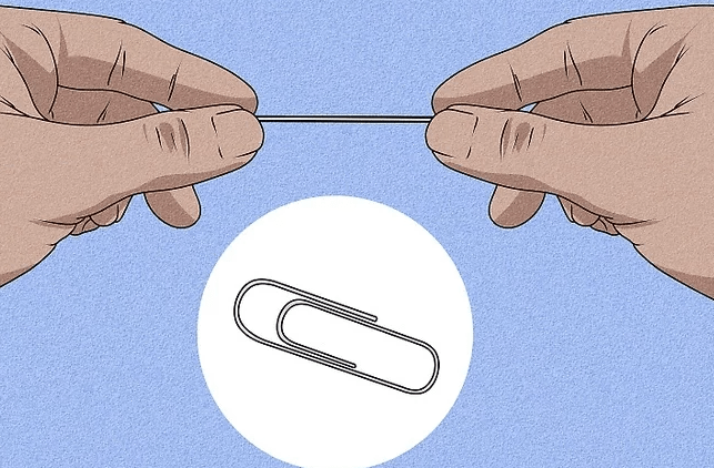 • Take one or two paperclips and straighten them out.