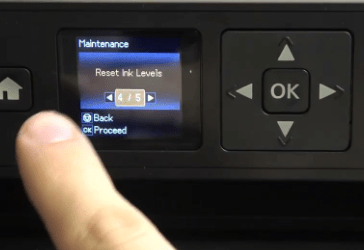 • From the Maintenance options, select “Reset Ink Levels” using the arrow buttons.