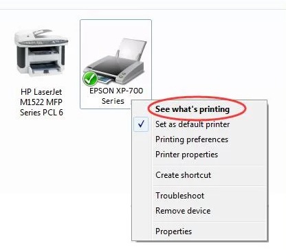 • From here, right click on your printer display name and select ‘See what’s printing’.