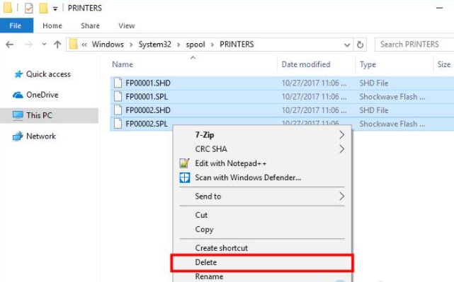 • After pasting this command on address bar, hit the enter key from your keyword. Now, you have reached the place where all  print jobs are stored.
