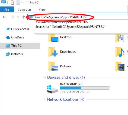 • Then, open the file explorer in ‘My PC’ and copy-paste this command –%windir%\System32\spool\PRINTERS